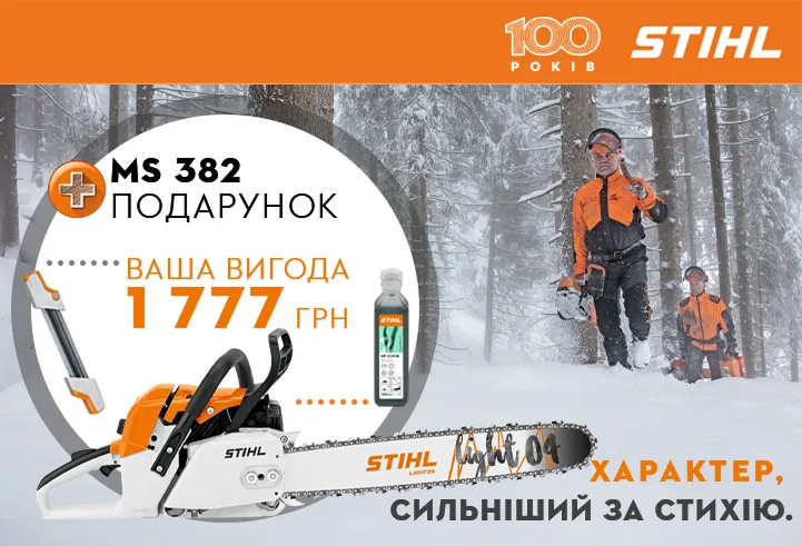 Купуйте Бензопилу STIHL MS382 (шина 45см) і отримуй в подарунок Масло для двотактних двигунів STIHL HP Ultra (100 мл) та Державку STIHL 2-в-1, 3/8"